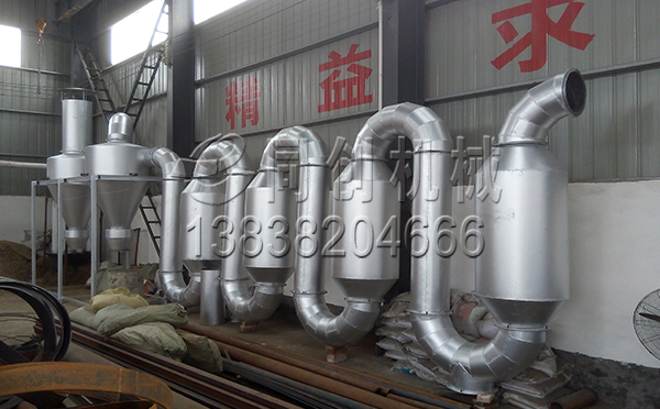 氣流式烘干機(jī)是指把粉粒體狀濕鋸末,采用螺旋輸送機(jī)將其連續(xù)加入干燥管內(nèi)。在高速熱氣流的輸送和分散中,使?jié)裎锪系闹械乃终舭l(fā),得到粉狀或粒狀干燥產(chǎn)品的過(guò)程。主要由空氣加熱器、加料器、氣流干燥管、旋風(fēng)分離器、風(fēng)機(jī)等組成。