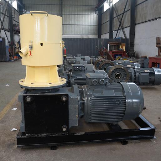 該設(shè)備以機械固有的運動為基礎(chǔ),電機(或柴油機)作動力,帶動齒輪傳遞至主軸,在磨擦力的作用下使壓輥自轉(zhuǎn),讓壓輥與壓模之間產(chǎn)生相應(yīng)的磨擦溫度,使粉狀物料通過塑化,蛋白脂受溫變性,在壓輪的擠壓下從??字袛D出,通過對切刀的調(diào)整可以得到需要的顆粒長度,再經(jīng)甩料盤將制成的顆粒經(jīng)出料口送出機外。