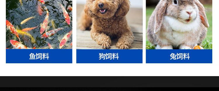 3、顆粒成分均勻,形狀整齊,顆粒粗細的孔徑可分為:Φ2、Φ2.5、Φ3、Φ3.5、Φ4、Φ5、Φ6、Φ7、Φ8等。用戶訂貨時,可根據(jù)養(yǎng)殖動物不同生長時期需要選擇。